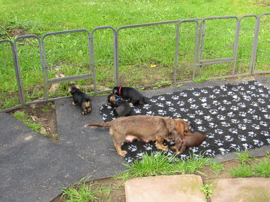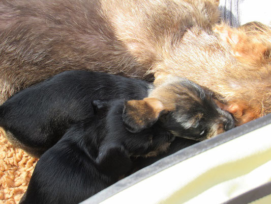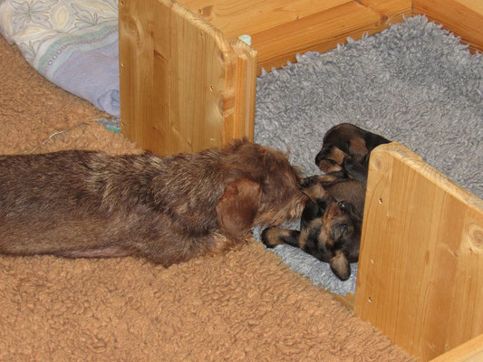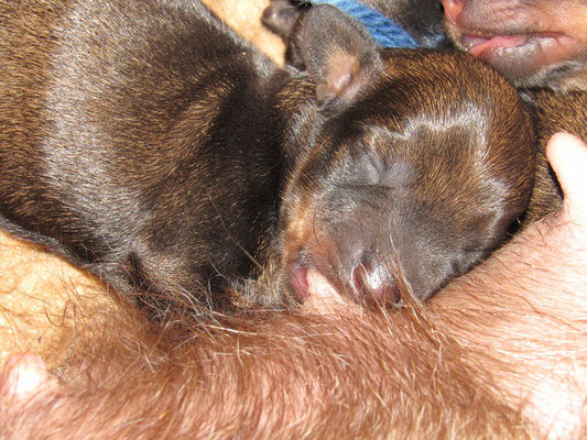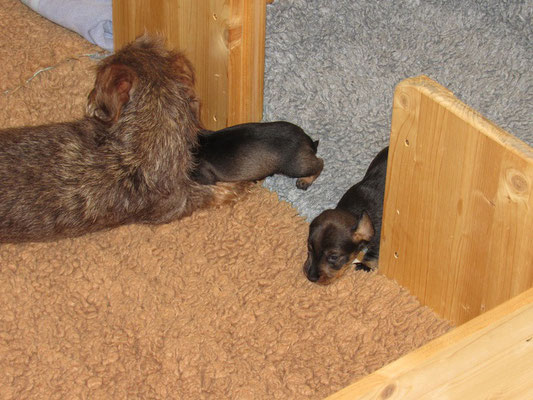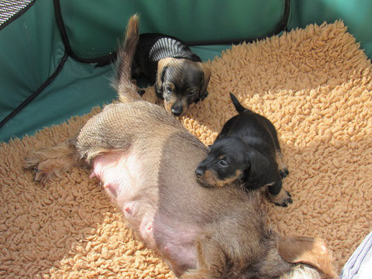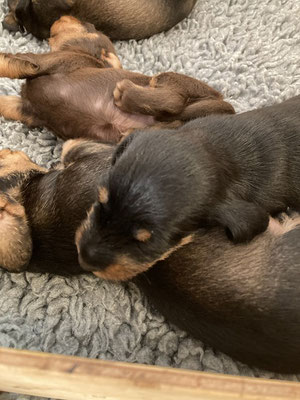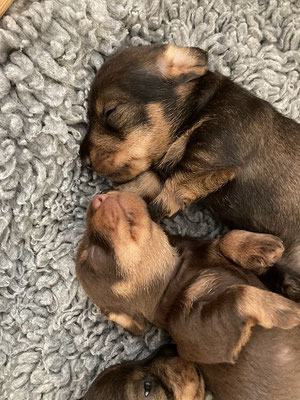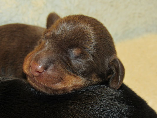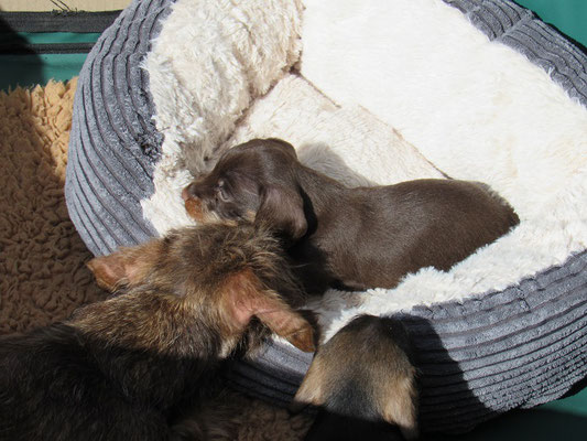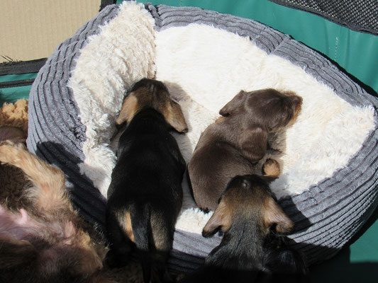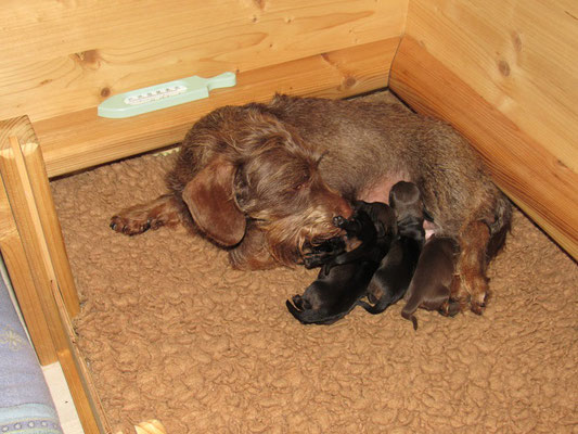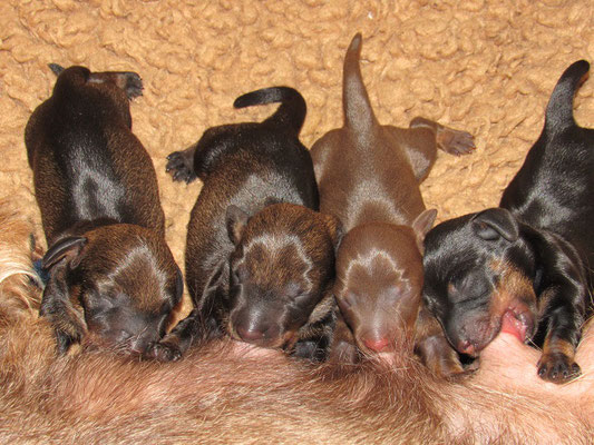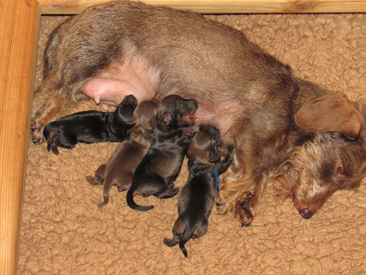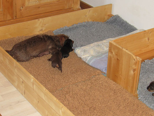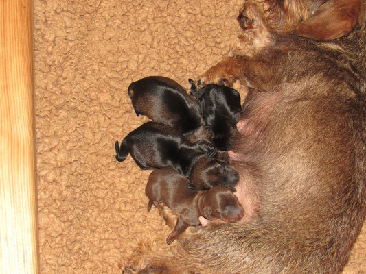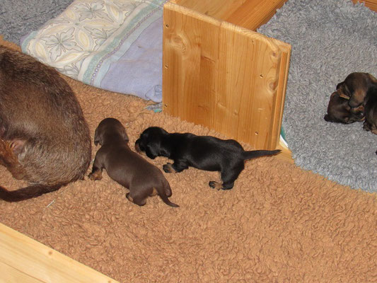 Unsere Line hat zwei Rüden in dunkelsaufarben und zwei Hündinnen in braun und schwarzrot das Leben geschenkt.